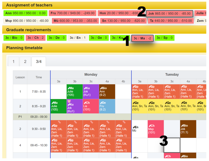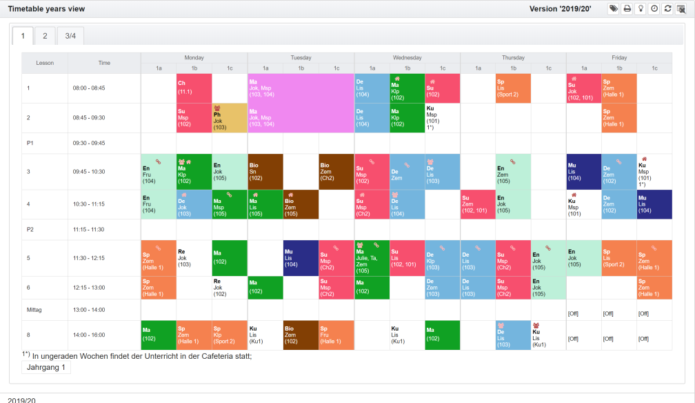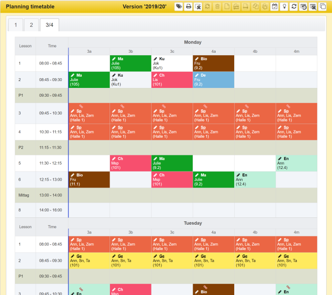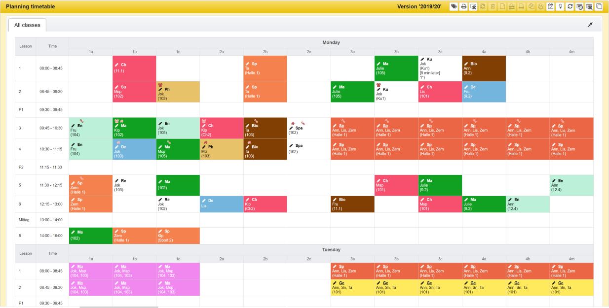 Stundenpläne für Lehrer, Räume oder Klassen. Die Planung kann allerdings