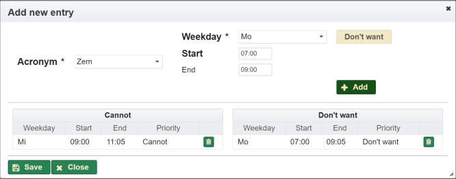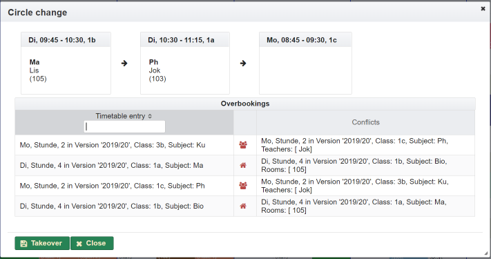 eingegebene Klasse (der Raum oder der Lehrer) nicht existieren, erfolgt
