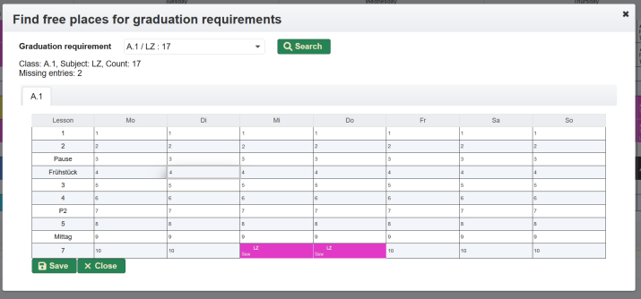 gewünschten Klasse (dem Lehrer oder Raum) gefragt. Sollte die