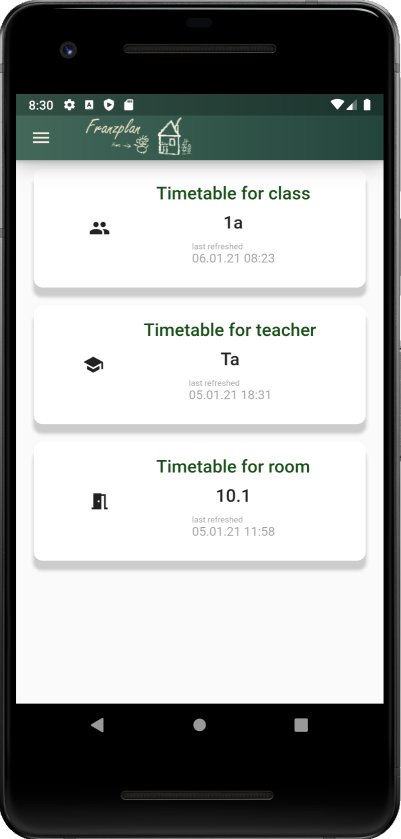 Zur Ansicht der Stundenpläne kann man direkt eine der Kacheln auf dem