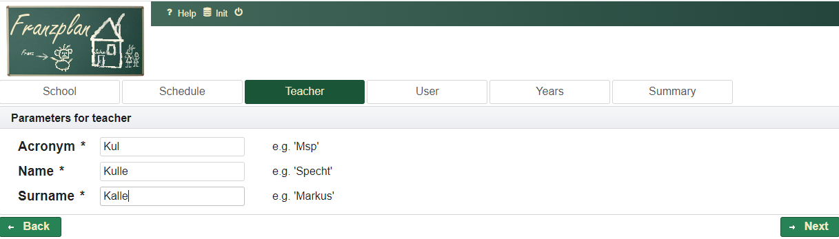 Deshalb wird im dann ein Default-Lehrer zugeordnet. Hier kann man das Kürzel festlegen. \