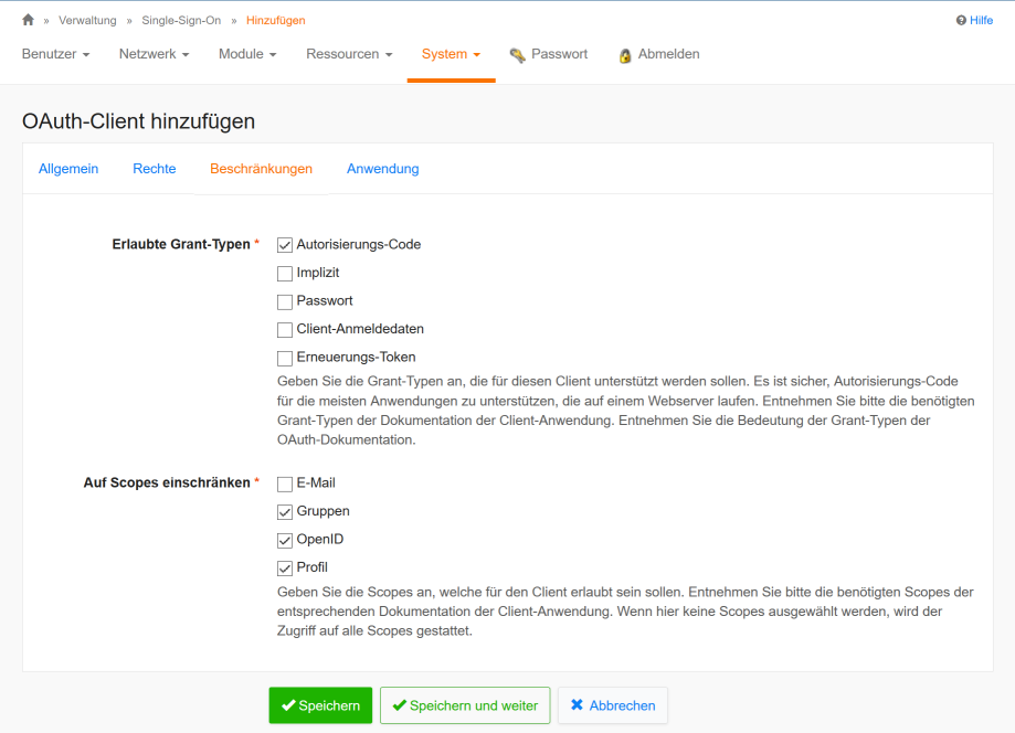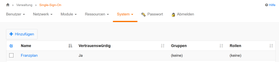 Die Einstellungen für SSO (Single Sign On) werden direkt über