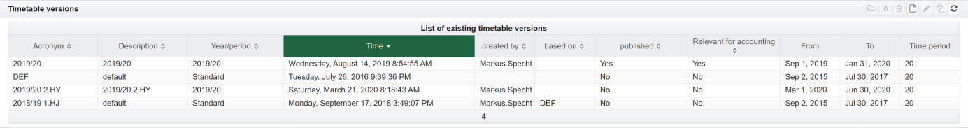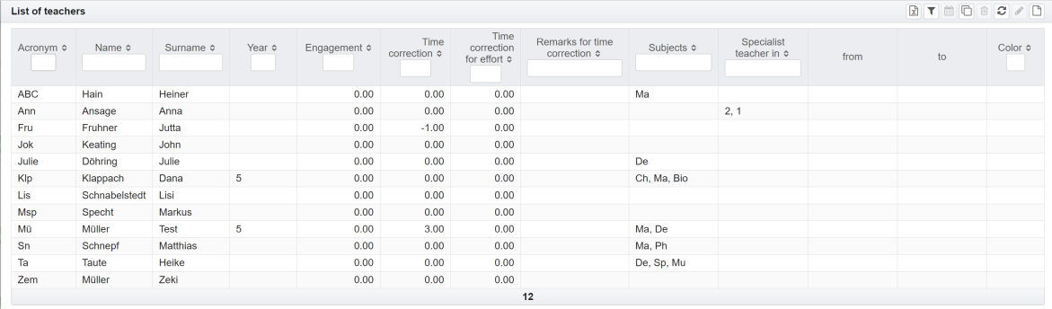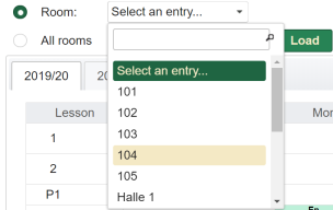 Die Bedienung der Ansichten für Klassen, Lehrer oder Räume erfolgt im