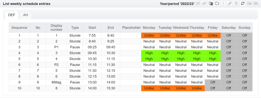 gilt für die Anzaige von Vertretungsplänen in der Planungssicht.